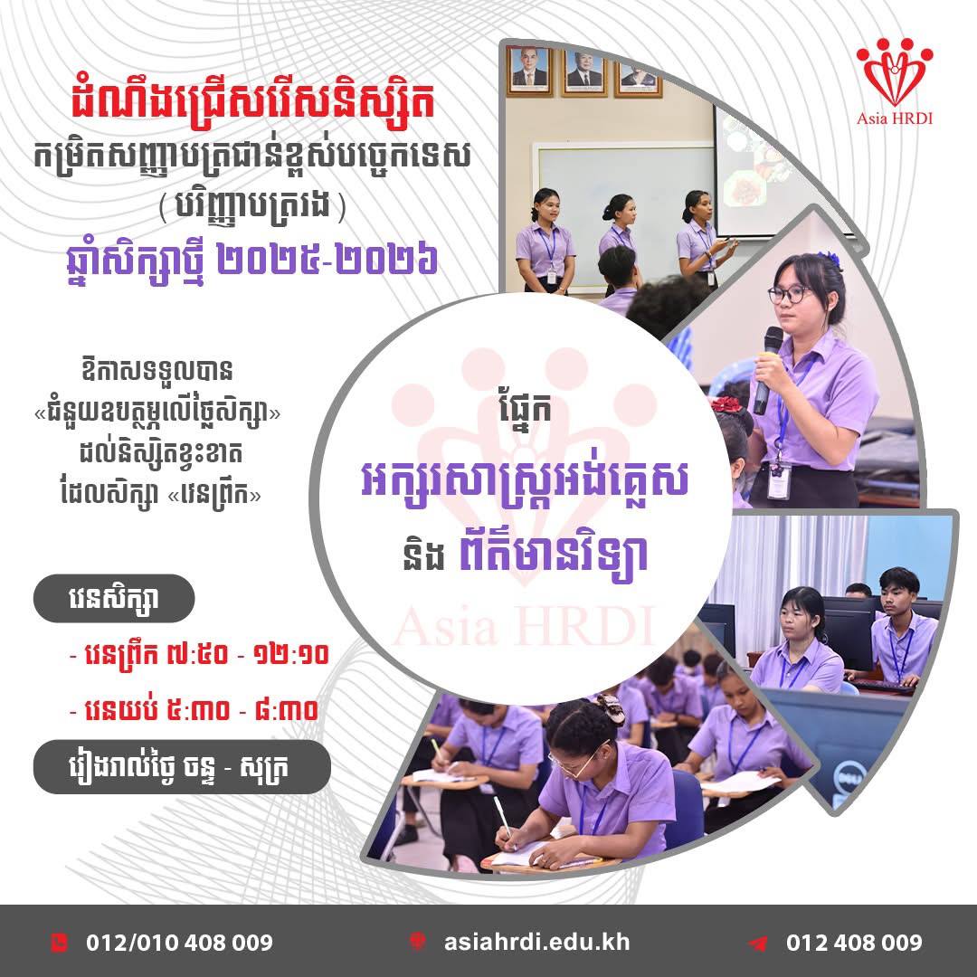 * ផ្នែក៖ អក្សរសាស្ត្រអង់គ្លេស និងព័ត៌មានវិទ្យា